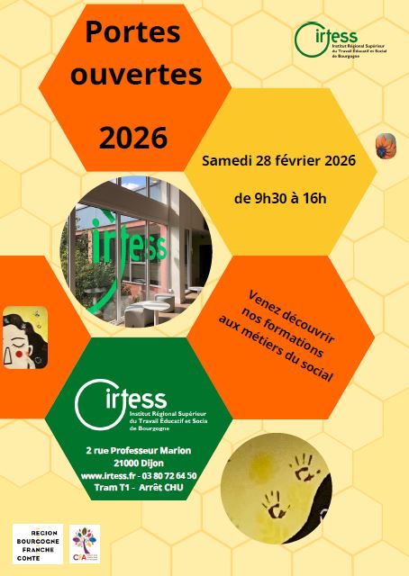 Découvrir les métiers du social Lycéens, étudiants, demandeurs d’emploi, salariés, l’IRTESS peut vous aider dans vos démarches d’orientation et la définition de votre projet professionnel dans le secteur éducatif et social. Rendez-vous à l’IRTESS : Samedi 28 février 2026 de 9h30 à 16h 2 rue professeur Marion – Dijon Tram : arrêt CHU (plan d’accès…